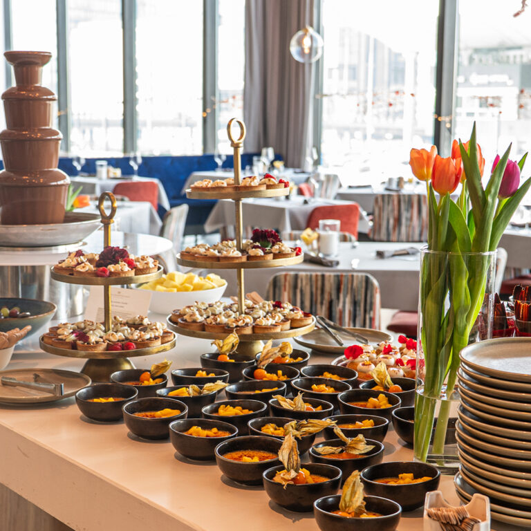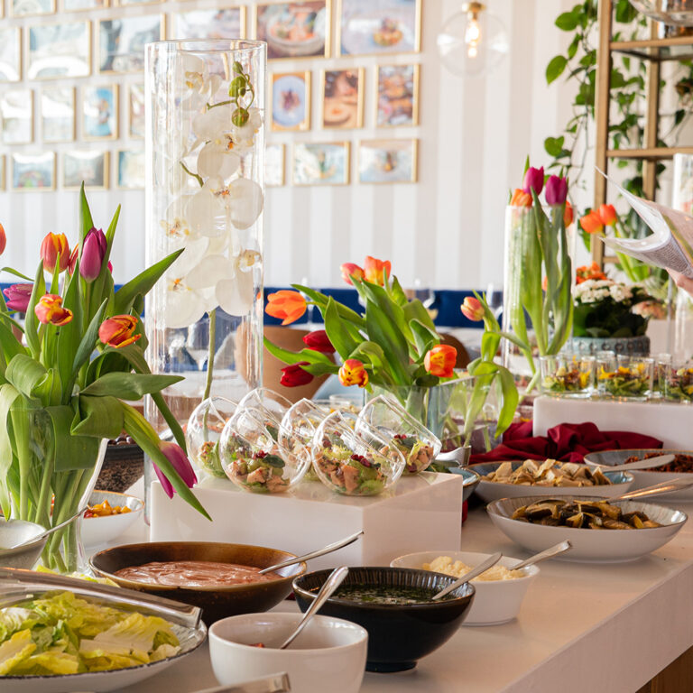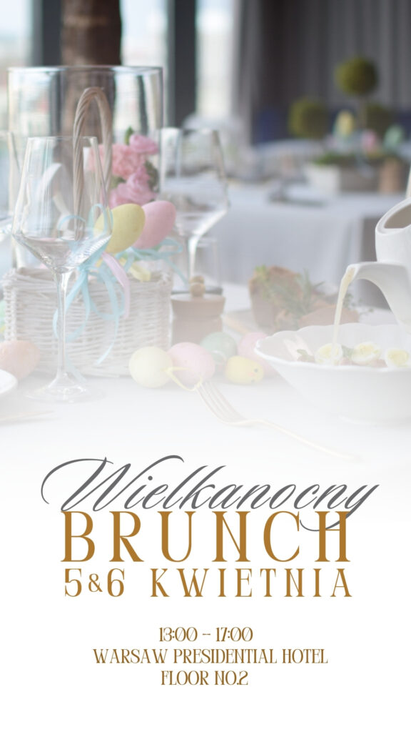 Brunch Wielkanocny odbywa się w eleganckich wnętrzach pięciogwiazdkowego Warsaw Presidential Hotel, gdzie swobodna atmosfera spotyka się z wysokim standardem obsługi. Bogaty bufet brunchowy inspirowany kuchnią polską i śródziemnomorską pozwala każdemu znaleźć swoje ulubione smaki – od klasycznych dań świątecznych po inspirowane kuchnią europejską specjały i desery przygotowywane przez hotelową cukiernię.